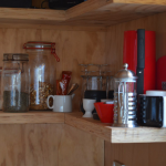 Drawing inspiration from nature the inside was lined with plywood and kitchenette was designed and made by S&S Builders.